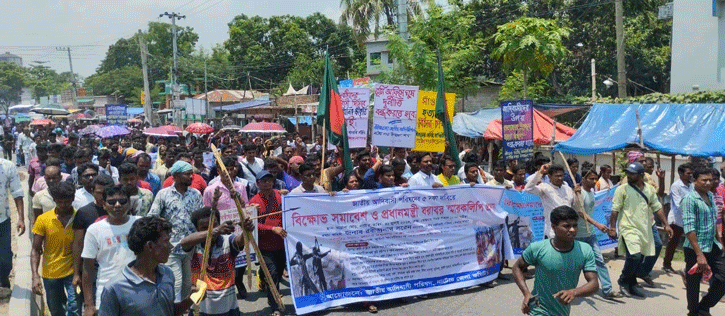 আদিবাসী হিসেবে সাংবিধানিক স্বীকৃতি, পৃথক ভূমি কমিশন ও মন্ত্রনালয় গঠনসহ ৫ দফা দাবি বাস্তবায়নের লক্ষ্যে নাটোরে বিক্ষোভ সমাবেশ ও প্রধানমন্ত্রী বরাবর স্মারকলিপি প্রদান করেছে জাতীয় আদিবাসী পরিষদ। সোমবার বেলা সাড়ে ১১টায় সংগঠনটির জেলা কমিটির আয়োজনে নাটোর শহরের মাদ্রাসা মোড় এলাকা থেকে একটি বিক্ষোভ মিছিল বের করা হয়। মিছিলটি শহরের প্রধান সড়ক প্রদক্ষিণ করে জেলা প্রশাসকের কার্যালয়ের সামনে গিয়ে শেষ হয়। পরে সেখানে জেলা কমিটির ভারপ্রাপ্ত সভাপতি রঘুনাথ এক্কার সভাপতিত্বে সংক্ষিপ্ত সমাবেশে বক্তব্য রাখেন অনুষ্ঠানের প্রধান অতিথি সংগঠনের কেন্দ্রীয় কমিটির সভাপতি রবীন্দ্রনাথ সরেন, ভারপ্রাপ্ত সাধারণ সম্পাদক নরেন পাহান, মুখপাত্র সুভাষ চন্দ্র হেমরম, ভারপ্রাপ্ত সাংগঠনিক সম্পাদক সন্তোষ কুমার সিং, আদিবাসী ছাত্র পরিষদ কেন্দ্রীয় কমিটির সভাপতি নকুল পাহান, নাটোর জেলা কমিটির সাধারণ সম্পাদক কালিদাস রায়, উপদেষ্টা অ্যাডভোকেট বাকি বিল্লাহ রশিদী, যুগ্ম সাধারণ সম্পাদক যাদু কুমার দাস, চাঁপাই নবাবগঞ্জ জেলা কমিটির সভাপতি বিচিত্রা তির্কী, পাবনা জেলা সভাপতি আশিক বানিয়াস, নাটোর সদর কমিটির সভাপতি বাবুল পাহান, সাধারণ সম্পাদক শ্যামলাল তেলী প্রমূখ। বক্তব্যে সংগঠনটির কেন্দ্রীয় সভাপতি রবীন্দ্রনাথ সরেন বলেন, কোন রাজনৈতিক দলই তাদের নির্বাচনী ইশতেহারে আদিবাসীদেরকে নির্বাচনী ইস্তেহারে দেওয়া কোন প্রতিশ্রুতি পূরণ করেনি। প্রতিশ্রুতি দেওয়ার নামে আদিবাসীদের সাথে প্রতারণা করা হয়েছে। এছাড়া আদিবাসীদের নিয়ে সর্বোচ্চ ষড়যন্ত্র এবং দুর্নীতি চলছে। আগামী সংসদ নির্বাচনের আগেই আদিবাসীদের ৫ দফা দাবি মেনে নিতে সরকারের প্রতি আহ্বান জানানো হয়। পরে পাঁচ দফা সম্বলিত স্মারকলিপি জেলা প্রশাসকের মাধ্যমে প্রধানমন্ত্রী বরাবর প্রদান করা হয়।