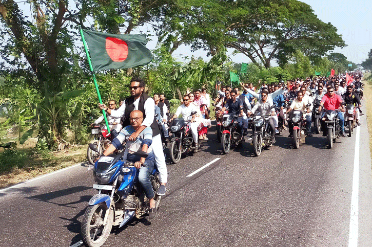 বিএনপি-জামায়াতের অবরোধের বিরুদ্ধে নাটোরের গুরুদাসপুরে মোটরসাইকেল শোভাযাত্রা ও বিক্ষোভ সমাবেশ করেছে আওয়ামী লীগ। রোববার সকাল ১০টায় গুরুদাসপুর উপজেলার মডেল পাইলট উচ্চ বিদ্যালয় মাঠ থেকে ওই শোভাযাত্রা বের হয়। নাটোর জেলা আওয়ামী লীগের তথ্য ও গবেষণা বিষয়ক সম্পাদক নাটোর-৪ আসন থেকে আওয়ামী লীগের মনোনয়ন প্রত্যাশী আসিফ আব্দুল্লাহ বীন কুদ্দুস শোভনের নেতৃত্বে শোভাযাত্রা ও বিক্ষোভ সমাবেশে অংশগ্রহণ করে গুরুদাসপুর-বড়াইগ্রামের শত শত নেতাকর্মী।