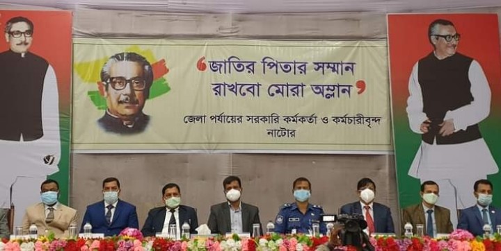 বঙ্গবন্ধু ভাস্কর্য ভাঙ্গার প্রতিবাদে সমাবেশ করেছে নাটোর জেলার সকল পর্যায়ের সরকারি কর্মকর্তা ও কর্মচারীবৃন্দ। “জাতির পিতার সন্মান রাখবো মোরা অম্লান” এই প্রতিপাদ্য কে সামনে রেখে এই সমাবেশ অনুষ্ঠিত হয়। শনিবার সকাল সাড়ে দশটার দিকে নবাব সিরাজ-উদ-দৌলা সরকরি কলেজ অডিটোরিয়ামে জেলা প্রশাসক মোহাম্মদ শাহরিয়াজ এর সভাপতিত্বে এই সভা অনুষ্ঠিত হয়।